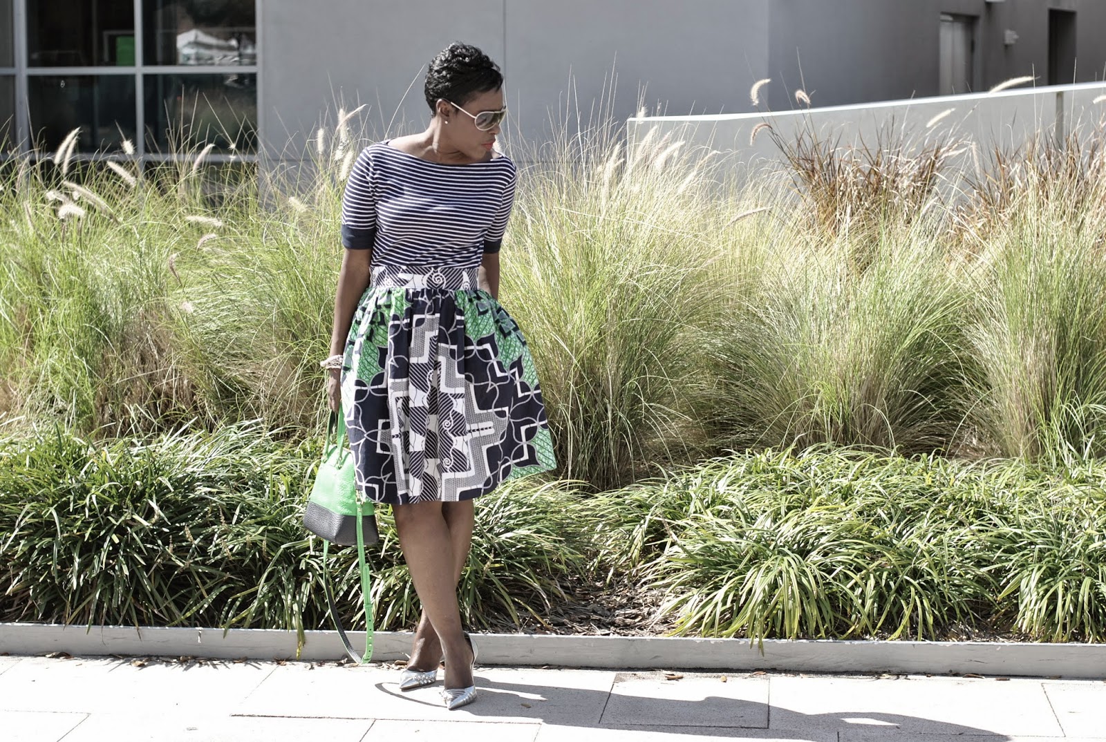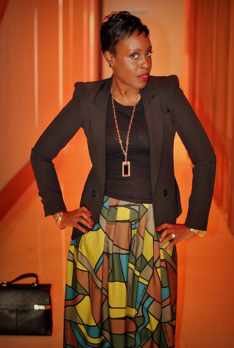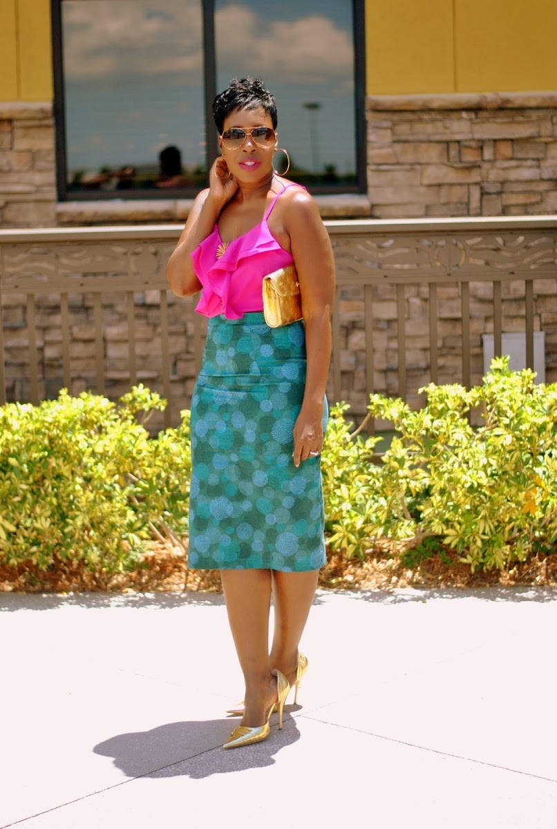 Look 1: Geo Print Silk Blouse | Look 2: Ankara Full Skirt | Look 3: Pencil Skirt | Look 4: Floral Harem Jumpsuit | Look 5: Parisian Graphic Top | Look 6: Bling Blue Bodycon Dress: Look 7: Wool Blend Lettuce Edge Dress | Look 8: Geo Print Sheath Dress | Look 9: High Waisted Pencil Skirt | Look 10: Backless Maxi Dress (worn as skirt)