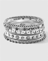 Ninian Bangles $38.00 at Chico’sExotic floral and spiral designs on silver metal bangles.